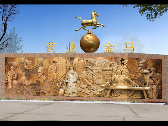 金馬藥業大門銅浮雕墻設計方案